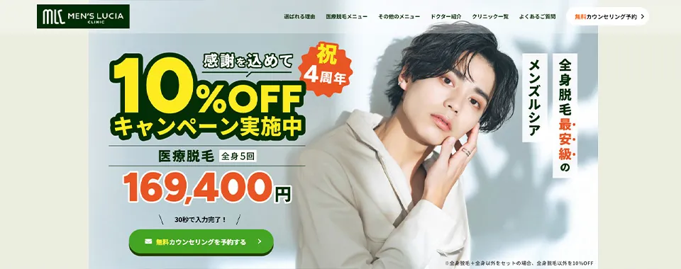レジーナクリニックオムは全身・部位の脱毛プランが豊富なメンズ専門の脱毛クリニックです。